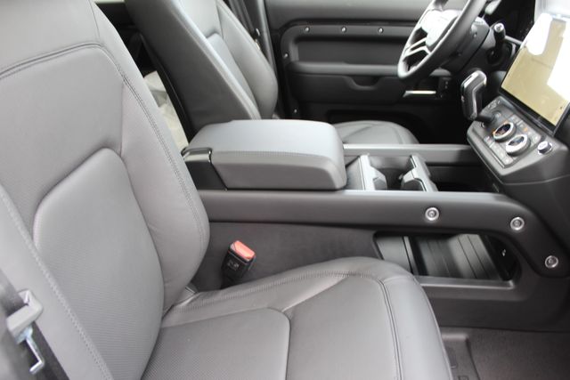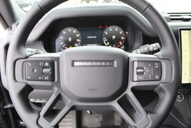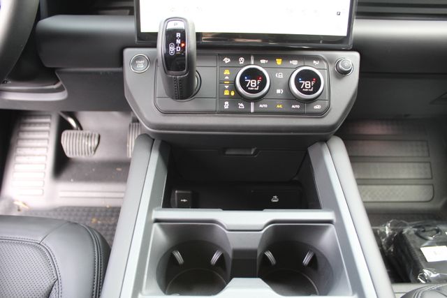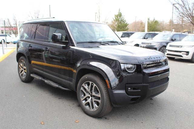 This 2026 Land Rover Defender 110 comes through Land Rover Chantilly specd with serious intention. Finished in Santorini Black with Ebony Windsor leather it balances brutal capability with clean luxury. It looks ready to disappear down a dirt road on Friday and roll into a nice restaurant Saturday without changing its attitude.