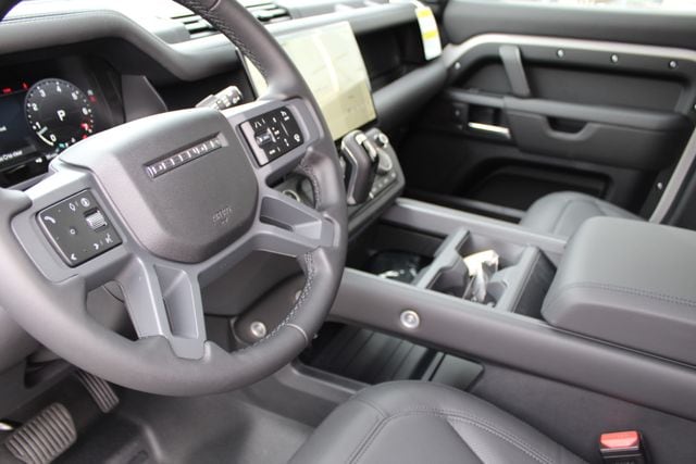 At Land Rover Chantilly, this 26MY Defender 110 S comes finished in Borasco Grey with Ebony Windsor leather, and it lands squarely in that sweet spot between rugged and refined. Power comes from the 300PS 2.0L turbocharged engine paired with an 8 speed automatic, delivering smooth daily drivability with enough punch to remind you this is still a Defender at heart