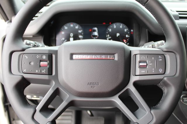 Practical details are everywhere. A full size spare, premium interior protection and storage, rear seat convenience features, roof rails, and smart storage solutions make this Defender ready for daily driving, road trips, and whatever comes up next. Terrain Response, adaptive cruise control, surround camera system, blind spot assist, lane keep assist, and emergency braking give it confidence on road and off