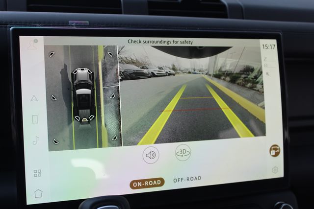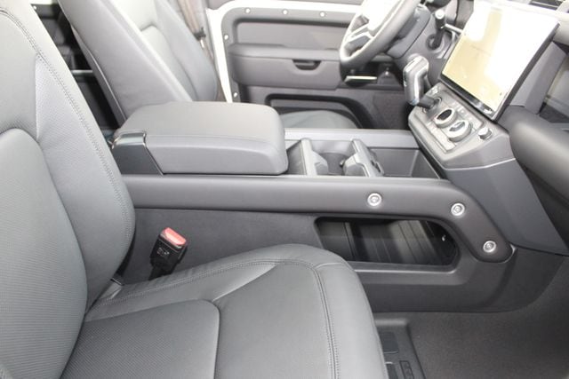 Practical details matter here. A full size spare, body colored spare wheel cover, premium interior protection, rear seat convenience features, and roof rails all reinforce that this Defender was built to be used, not babied. Terrain Response, adaptive cruise control, surround camera system, blind spot assist, and emergency braking make it just as confident in traffic as it is off the grid