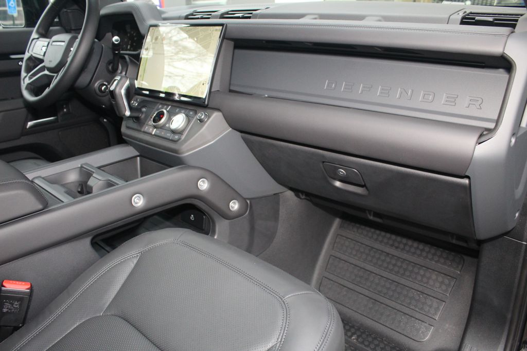 Inside, the Defender 110 S surrounds you in unparalleled luxury. The 14-Way Heated and Cooled Electric Memory Front Seats ensure maximum comfort, while the Extended Leather Upgrade and Ebony Morzine Headlining create an elegant, sophisticated ambiance. The Navigation system with PIVI Pro keeps you connected and informed, and the ClearSight Interior Rear View Mirror provides enhanced visibility.