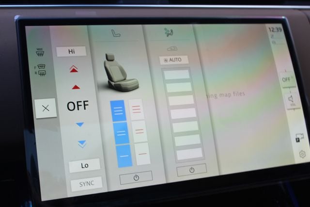 Technology is fully dialed in with the 13.1 inch touchscreen, digital driver display, connected navigation, Apple CarPlay, Android Auto, wireless device charging, and a premium sound system that delivers clean, immersive audio. The panoramic roof opens up the cabin and adds light without sacrificing that cocooned Range Rover feel
