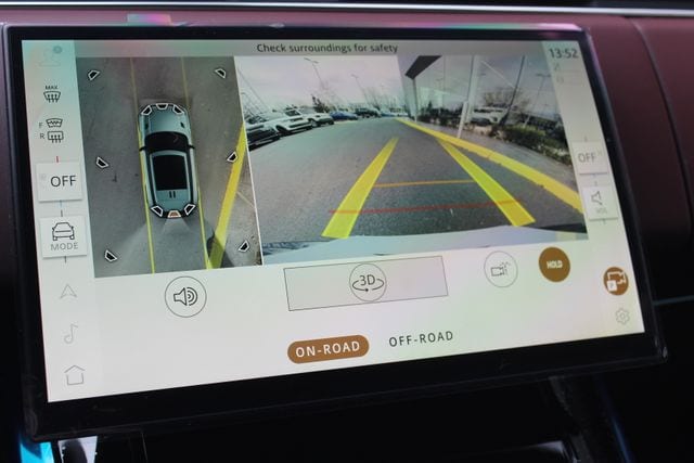 Technology is fully dialed in with the 13.1 inch touchscreen, digital driver display, connected navigation, Apple CarPlay, Android Auto, wireless device charging, and a Meridian 3D Surround Sound system that fills the cabin with clean, immersive audio. The sliding panoramic roof opens up the interior without sacrificing that cocooned Range Rover vibe