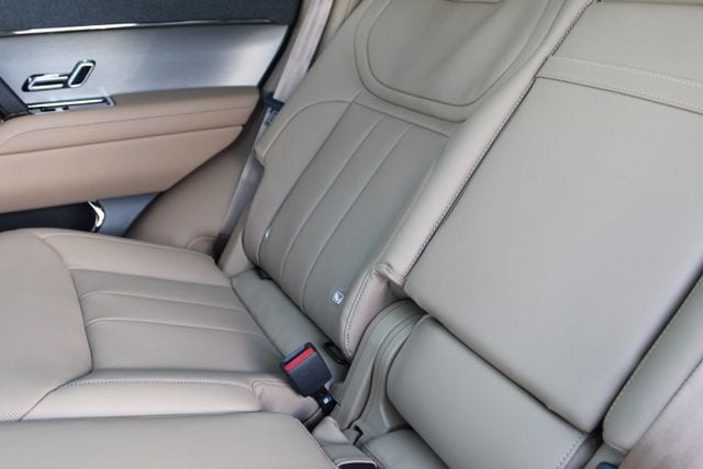 Caraway Windsor leather. 20-way heated and ventilated electric memory front seats with power recline heated rear seats. Extended leather upgrade. Fine brushed aluminum finishers. Soft door close that seals with a muted, confident thud instead of a slam. You dont shut the door. It finishes the motion for you.