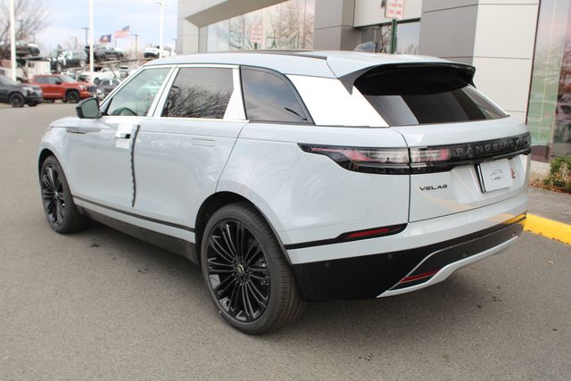 At Land Rover Chantilly, this 26.5MY Range Rover Velar Dynamic SE shows up in Arroios Grey with a Cloud perforated grained leather interior and a vibe that is clean, modern, and unapologetically confident. Power comes from a 250PS 2.0L turbocharged engine paired with an 8 speed automatic, delivering smooth, responsive acceleration that feels effortless in traffic and composed at highway speeds