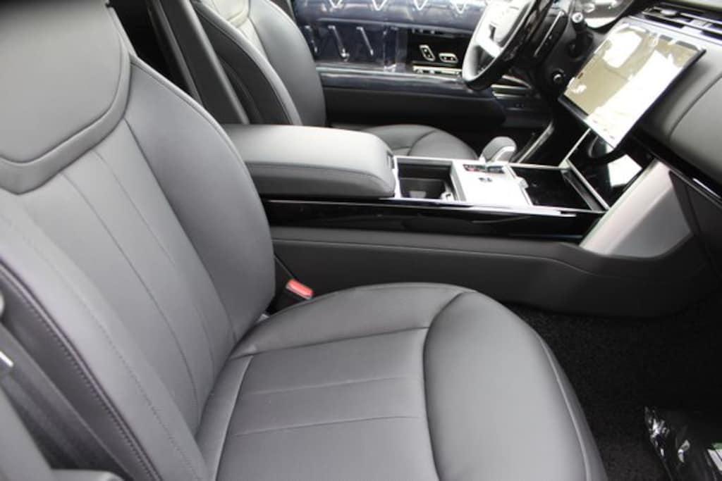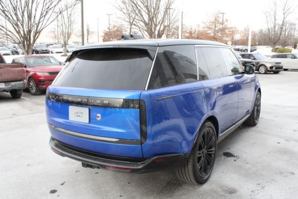 Available at Land Rover of Chantilly, this Range Rover LWB is built for families leaders and drivers who want full size comfort without giving up presence. The Velocity Blue exterior paired with the Narvik Black contrast roof and Shadow Exterior Pack creates a bold modern look that stands out without trying too hard. The 23 inch Style 1075 gloss black wheels anchor the stance and give this long wheelbase Range Rover serious curb authority.