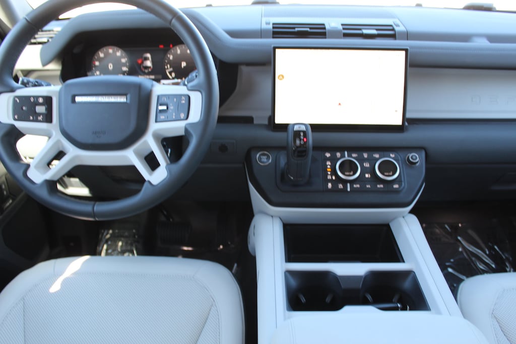 The 2025 Land Rover Defender 110 S packs a 2.0L turbocharged engine and 8-speed automatic that make capable sound like an understatement. Adaptive Dynamics and Electronic Air Suspension smooth out chaos like its choreography, while the Cold Climate Package keeps you warm enough to laugh at bad weather. Inside, 12-way heated memory seats, a heated steering wheel, and Meridian audio turn even backroad runs into first-class travel. And those 20-inch Satin Dark Grey wheels? They're the punctuation mark at the end of every bold statement this Defender makes.
