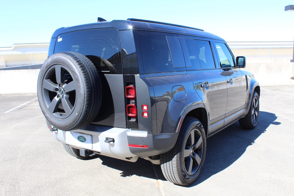 This Defender doesn't just turn heads it rearranges necks. Carpathian Gray Premium Metallic with the Black Exterior Pack? That's not a color combo; that's a power move. Its the kind of SUV that looks like it could tow your house and still show up to valet without a speck of dust.